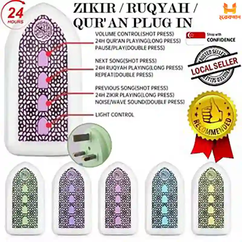 Portable Plug-In Quran Speaker Quran Player 25 Recitations with EN Translations The Daily Dua Device (Recommended For You) Simply plug it in and listen to high quality, clear recitation of the Quran with high-quality sound. Portable, so you can bring the powerful destruction anywhere home, office or travel! This Quran speaker allows to develop a good peaceful and spiritual environment, its regular listening and learning is also supported. Purchase at lowest price from Horekmal BD and get the blessings of the Holy Quran in your daily life.